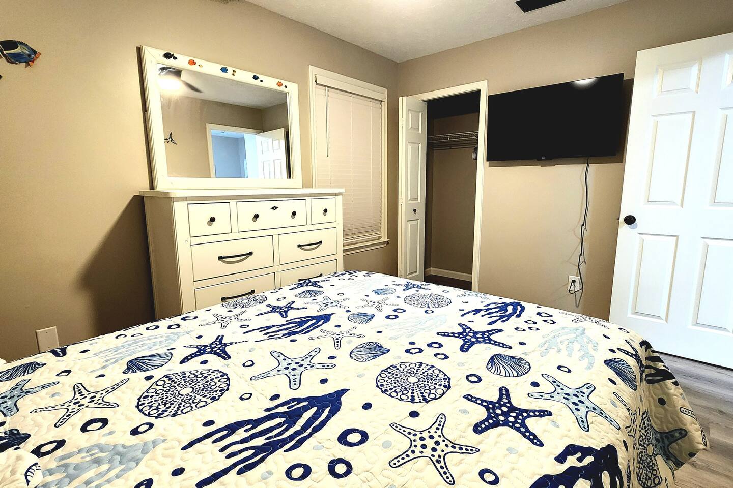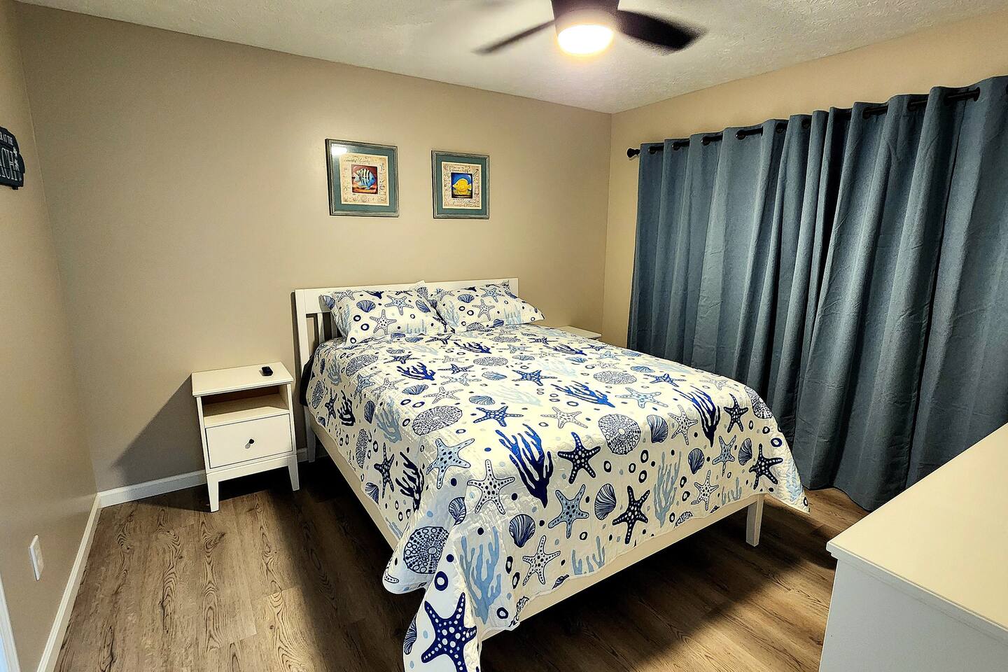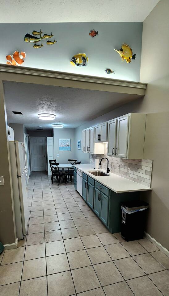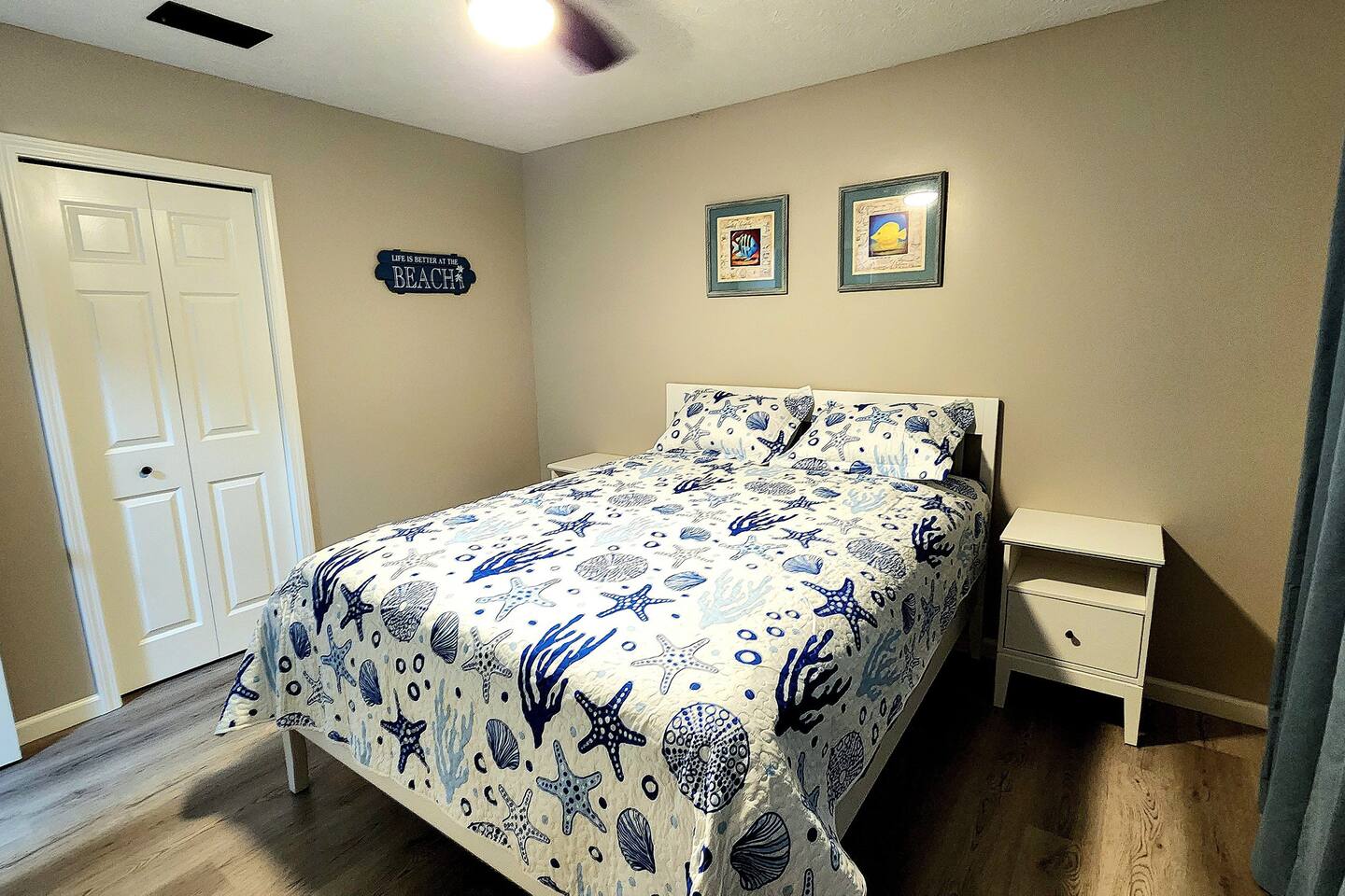 This property is located in a quiet area on the East end of Panama City Beach. The neighborhood is pretty quiet and traffic is light. It is a completely different feel than the hustle and bustle of beachfront towers. It is nice and relaxing and is still close to numerous restaurants, attractions, St. Andrews State Park, the marina, and more. The driveway is big enough to fit four vehicles. The inside of the unit has been completely updated as of July 2024. Almost all furnishings and decor are brand new. The kitchen has been stocked with all the essentials for cooking. Note that consumables like spices and coffee are not provided for heath and safety reason. Linens are also provided. Starter supplies of toilet paper, paper towels, soap, and shampoo are provided, but you will need to bring or purchase these items for the length of your stay. While linens are provided, beach towels are not. There is a queen bed, a full bed. and a sofa sleeper. Max occupancy is 6. There is a full-size washer and dryer in the laundry area. There is a dining room table that seats four in the eat-in kitchen and a large picnic table on the patio that will seat six. The back patio also has a charcoal grill. There are grill utensils under the kitchen sink. Please clean the grill and utensils if you use them. There are 3 TVs. The Living room has a 65" TV and the bedrooms each have a 42" TV. Gigabit wifi is provided. You can stream your favorite apps on any of the TVs. Note that we do not provide cable TV. There are several free apps available to stream on the TVs. There are many attractions, restaurants, bars, and entertainment options nearby. Following are a few of our favorites: Restaurants: Schooners Patches Dat Cajun Place Captain Andersons The Grand Marlin J Micheal's Off the Hook Angelo's Steak Pit Hammerhead Fred's Pineapple Willys Panama Pizzeria Shore Shack Pizza Bricks n Barley Pizza Hershey's Ice Cream Entertainment: Sea Screamer Dolphon Cruise Sea Dragon Pirate Cruise Jubilee Fishing St. Andrews State Park Pontoon rentals at the marina Miniature golf and go carts Coconut Creek golf and maze Wonderworks Zoo World and of course, the beach Pier park is approximately 10 miles away.. If you take middle beach road (Hutchison) it is about a 15 minute drive.