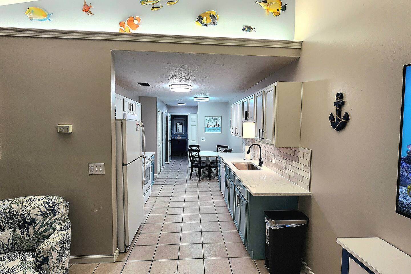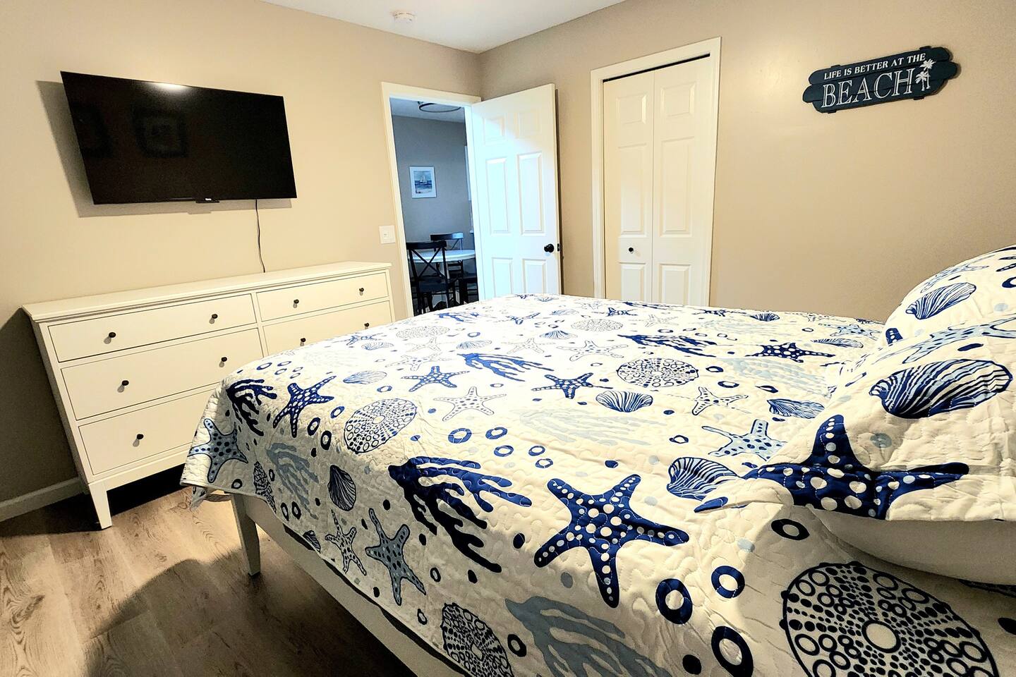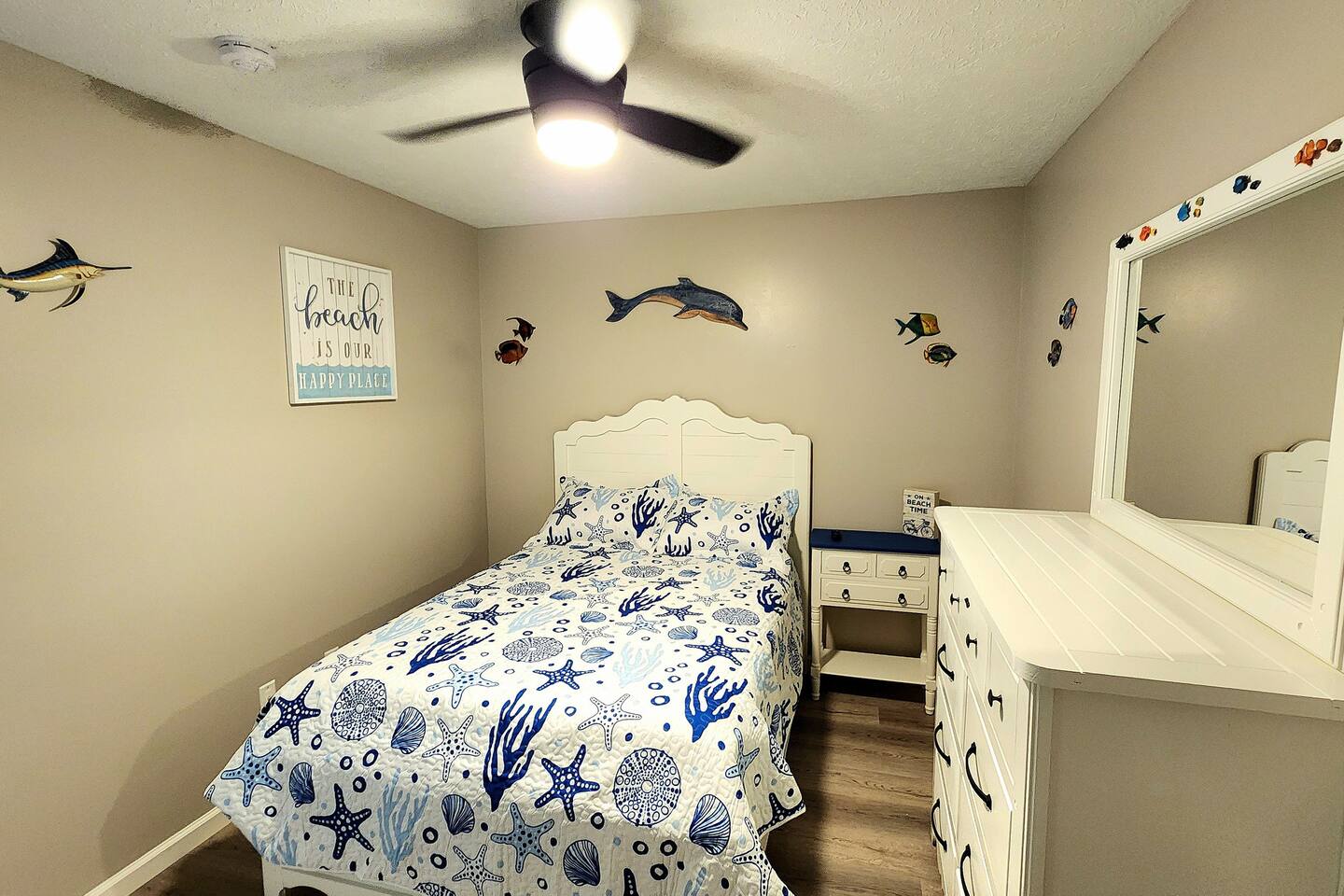 This property is located in a quiet area on the East end of Panama City Beach. The neighborhood is pretty quiet and traffic is light. It is a completely different feel than the hustle and bustle of beachfront towers. It is nice and relaxing and is still close to numerous restaurants, attractions, St. Andrews State Park, the marina, and more. The driveway is big enough to fit four vehicles. The inside of the unit has been completely updated as of July 2024. Almost all furnishings and decor are brand new. The kitchen has been stocked with all the essentials for cooking. Note that consumables like spices and coffee are not provided for heath and safety reason. Linens are also provided. Starter supplies of toilet paper, paper towels, soap, and shampoo are provided, but you will need to bring or purchase these items for the length of your stay. While linens are provided, beach towels are not. There is a queen bed, a full bed. and a sofa sleeper. Max occupancy is 6. There is a full-size washer and dryer in the laundry area. There is a dining room table that seats four in the eat-in kitchen and a large picnic table on the patio that will seat six. The back patio also has a charcoal grill. There are grill utensils under the kitchen sink. Please clean the grill and utensils if you use them. There are 3 TVs. The Living room has a 65" TV and the bedrooms each have a 42" TV. Gigabit wifi is provided. You can stream your favorite apps on any of the TVs. Note that we do not provide cable TV. There are several free apps available to stream on the TVs. There are many attractions, restaurants, bars, and entertainment options nearby. Following are a few of our favorites: Restaurants: Schooners Patches Dat Cajun Place Captain Andersons The Grand Marlin J Micheal's Off the Hook Angelo's Steak Pit Hammerhead Fred's Pineapple Willys Panama Pizzeria Shore Shack Pizza Bricks n Barley Pizza Hershey's Ice Cream Entertainment: Sea Screamer Dolphon Cruise Sea Dragon Pirate Cruise Jubilee Fishing St. Andrews State Park Pontoon rentals at the marina Miniature golf and go carts Coconut Creek golf and maze Wonderworks Zoo World and of course, the beach Pier park is approximately 10 miles away.. If you take middle beach road (Hutchison) it is about a 15 minute drive.