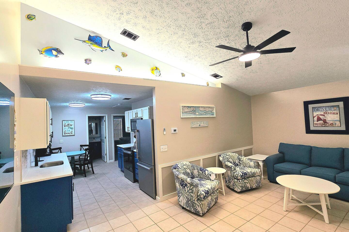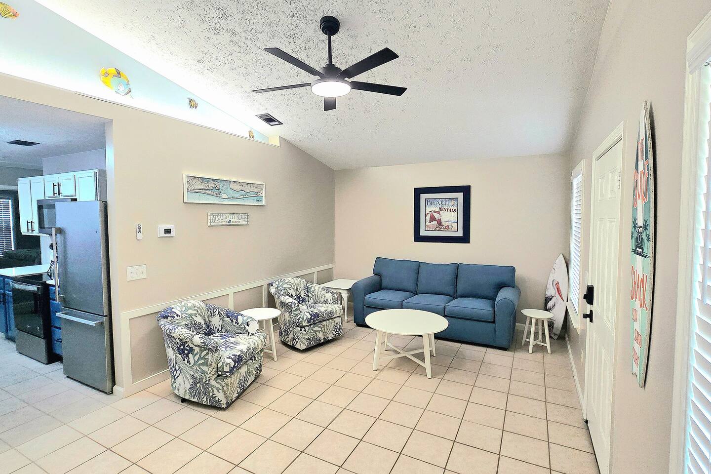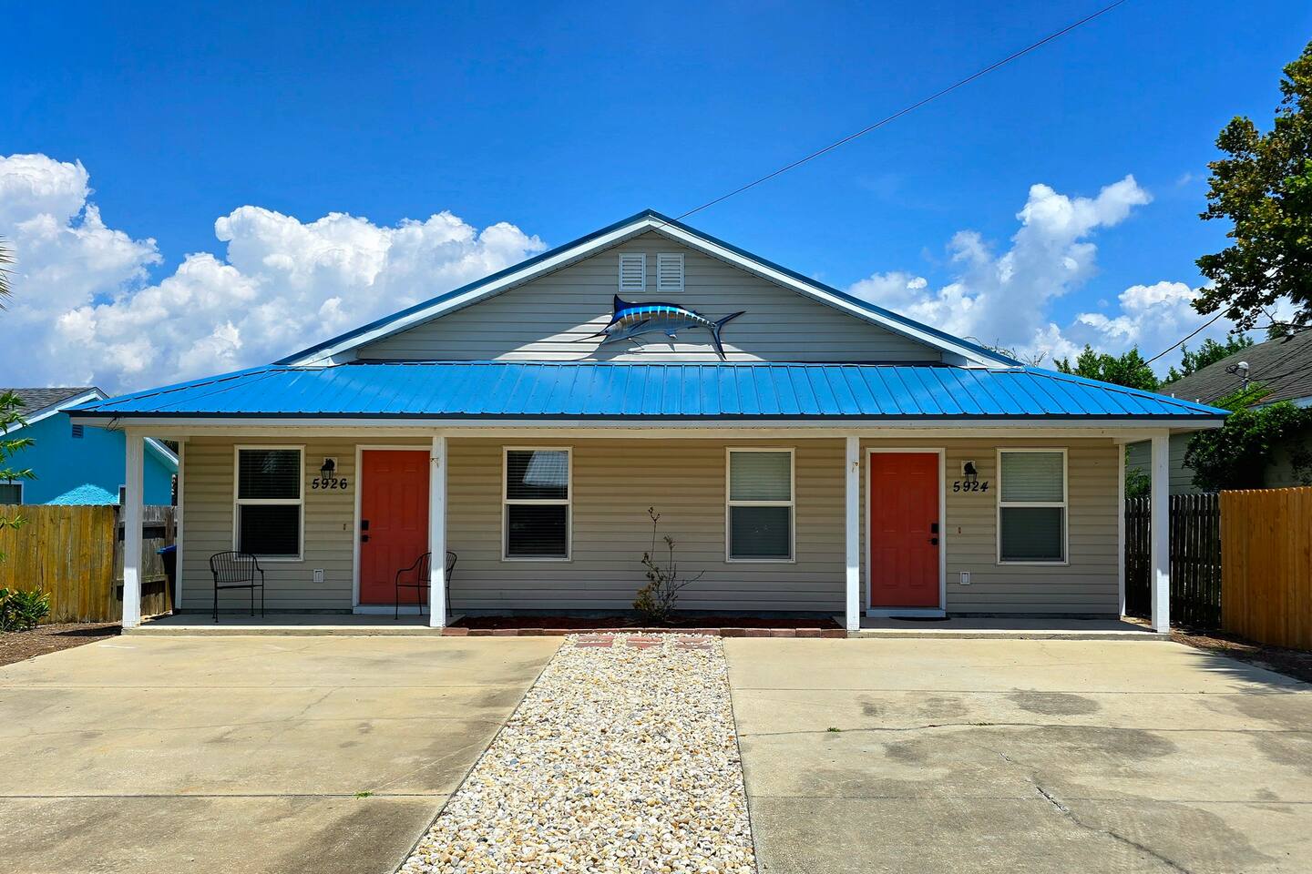 Both sides of this duplex are available to rent. With both sides, this property can accomodate up to 12 people. This property is located in a quiet area on the East end of Panama City Beach. The neighborhood is pretty quiet and traffic is light. It is a completely different feel than the hustle and bustle of beachfront towers. It is nice and relaxing and is still close to numerous restaurants, attractions, St. Andrews State Park, the marina, and more. The driveway is big enough to fit four vehicles. The inside of the unit has been completely updated as of August 2025. Almost all furnishings and decor are brand new. The kitchen has been stocked with all the essentials for cooking. Note that consumables like spices and coffee are not provided for heath and safety reason. Linens are also provided. Starter supplies of toilet paper, paper towels, soap, and shampoo are provided, but you will need to bring or purchase these items for the length of your stay. While linens are provided, beach towels are not. There is a queen bed, a full bed. and a sofa sleeper. Max occupancy is 6. There is a full-size washer and dryer in the laundry area. There is a dining room table that seats four in the eat-in kitchen and a large picnic table on the patio that will seat six. The back patio also has a charcoal grill. There are grill utensils under the kitchen sink. Please clean the grill and utensils if you use them. There are 3 TVs. The Living room has a 65" TV and the bedrooms each have a 42" TV. Gigabit wifi is provided. You can stream your favorite apps on any of the TVs. Note that we do not provide cable TV. There are several free apps available to stream on the TVs. There are many attractions, restaurants, bars, and entertainment options nearby. Following are a few of our favorites: Restaurants: Schooners Patches Dat Cajun Place Captain Andersons The Grand Marlin J Micheal's Off the Hook Angelo's Steak Pit Hammerhead Fred's Pineapple Willys Panama Pizzeria Shore Shack Pizza Bricks n Barley Pizza Hershey's Ice Cream Entertainment: Sea Screamer Dolphon Cruise Sea Dragon Pirate Cruise Jubilee Fishing St. Andrews State Park Pontoon rentals at the marina Miniature golf and go carts Coconut Creek golf and maze Wonderworks Zoo World and of course, the beach Pier park is approximately 10 miles away.. If you take middle beach road (Hutchison) it is about a 15 minute drive.