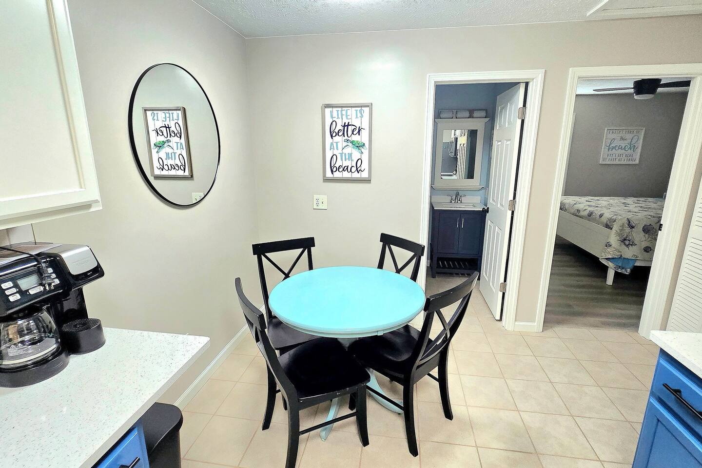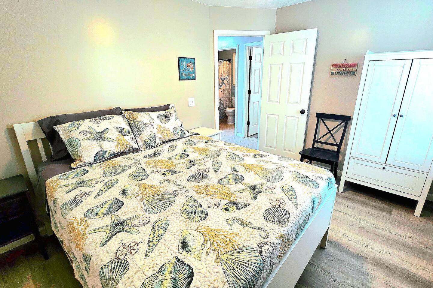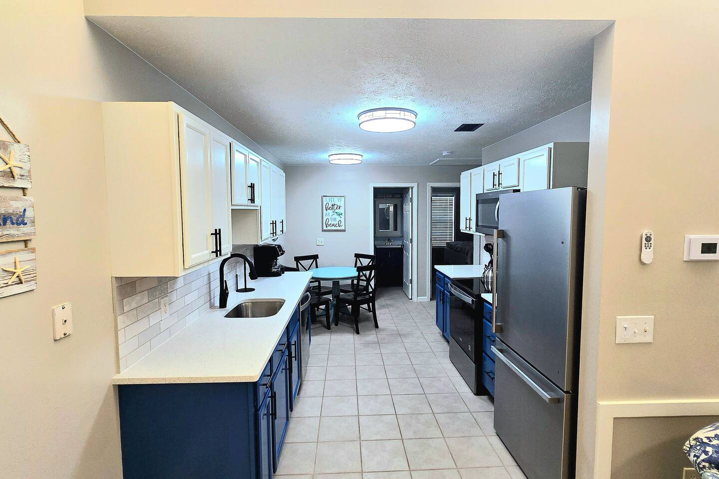 Both sides of this duplex are available to rent. With both sides, this property can accomodate up to 12 people. This property is located in a quiet area on the East end of Panama City Beach. The neighborhood is pretty quiet and traffic is light. It is a completely different feel than the hustle and bustle of beachfront towers. It is nice and relaxing and is still close to numerous restaurants, attractions, St. Andrews State Park, the marina, and more. The driveway is big enough to fit four vehicles. The inside of the unit has been completely updated as of August 2025. Almost all furnishings and decor are brand new. The kitchen has been stocked with all the essentials for cooking. Note that consumables like spices and coffee are not provided for heath and safety reason. Linens are also provided. Starter supplies of toilet paper, paper towels, soap, and shampoo are provided, but you will need to bring or purchase these items for the length of your stay. While linens are provided, beach towels are not. There is a queen bed, a full bed. and a sofa sleeper. Max occupancy is 6. There is a full-size washer and dryer in the laundry area. There is a dining room table that seats four in the eat-in kitchen and a large picnic table on the patio that will seat six. The back patio also has a charcoal grill. There are grill utensils under the kitchen sink. Please clean the grill and utensils if you use them. There are 3 TVs. The Living room has a 65" TV and the bedrooms each have a 42" TV. Gigabit wifi is provided. You can stream your favorite apps on any of the TVs. Note that we do not provide cable TV. There are several free apps available to stream on the TVs. There are many attractions, restaurants, bars, and entertainment options nearby. Following are a few of our favorites: Restaurants: Schooners Patches Dat Cajun Place Captain Andersons The Grand Marlin J Micheal's Off the Hook Angelo's Steak Pit Hammerhead Fred's Pineapple Willys Panama Pizzeria Shore Shack Pizza Bricks n Barley Pizza Hershey's Ice Cream Entertainment: Sea Screamer Dolphon Cruise Sea Dragon Pirate Cruise Jubilee Fishing St. Andrews State Park Pontoon rentals at the marina Miniature golf and go carts Coconut Creek golf and maze Wonderworks Zoo World and of course, the beach Pier park is approximately 10 miles away.. If you take middle beach road (Hutchison) it is about a 15 minute drive.