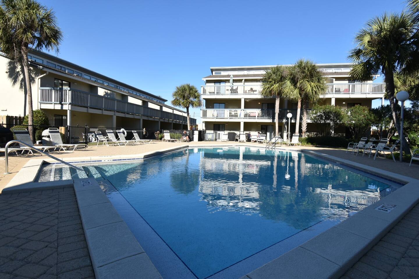 You are welcome to park in any of the pasking areas in the complex (please hang parking pass from vehicle mirror). You are welcome to use the pool, beach access, outdoor showers, patio furniture, grills, and common seating area. There are bathrooms by the pool.