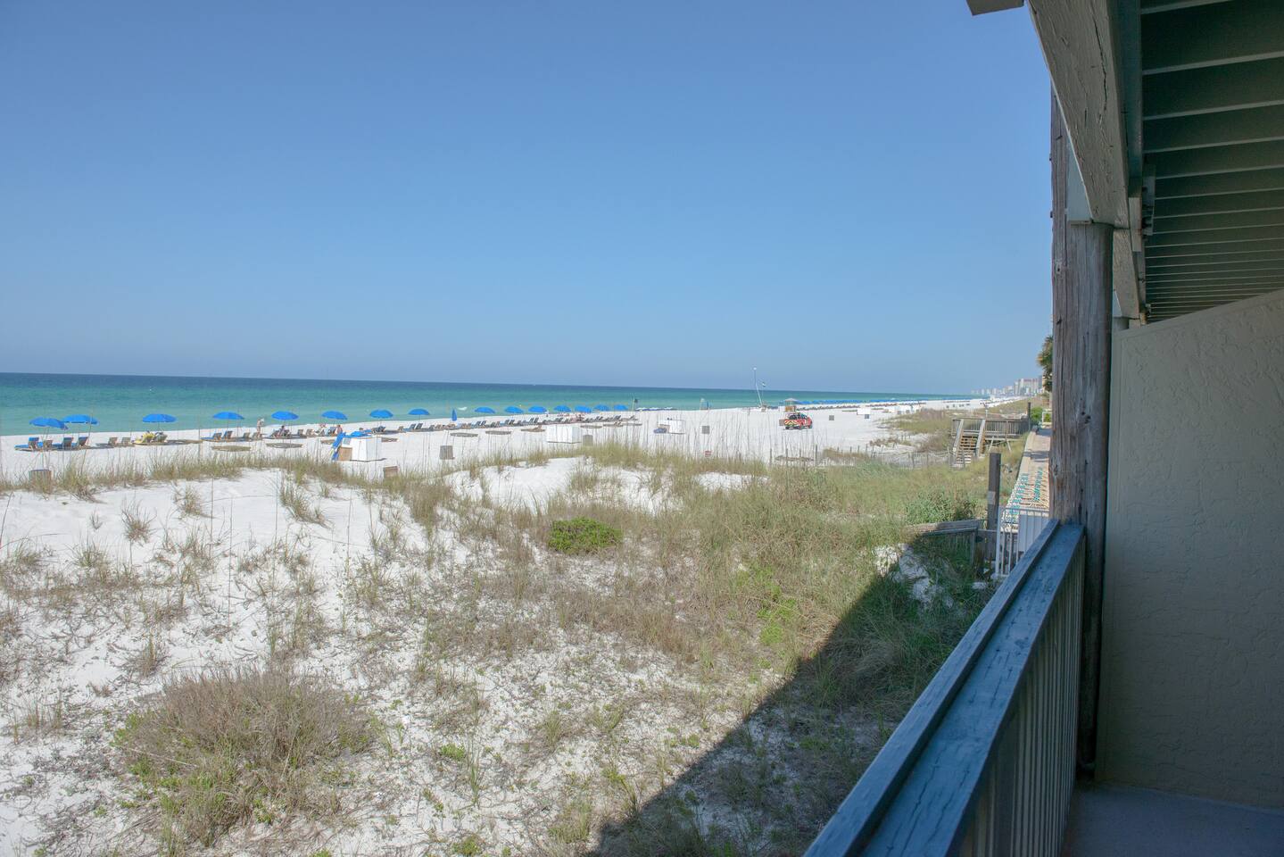 The east end of the beach is much quieter than the west end of town. We love that it is less congested yet has everything you will need nearby. The complex is very laid back and family friendly. It is usually pretty quiet. There are lots of great restaurants nearby. There is plenty of nearby entertainment for all ages. The Marinas and St. Andrews Park are only a couple miles away. Pier Park is 8 miles away.