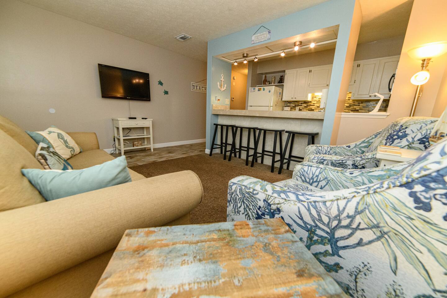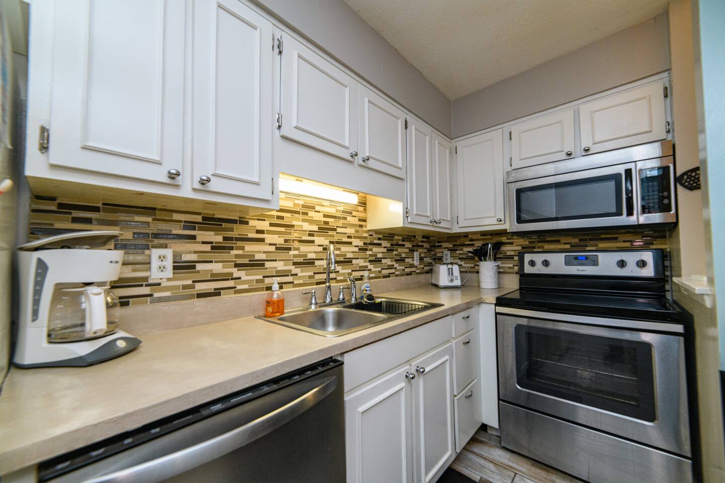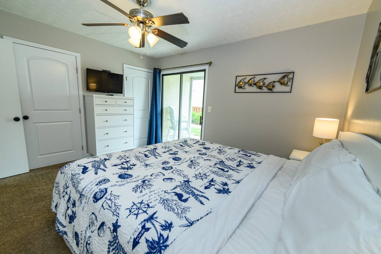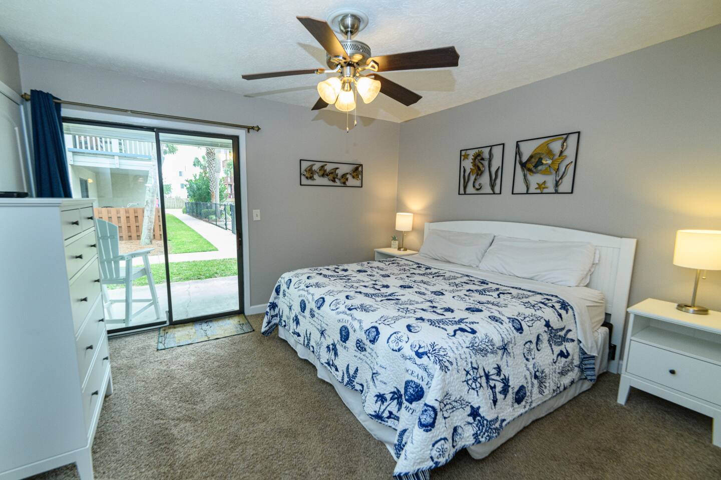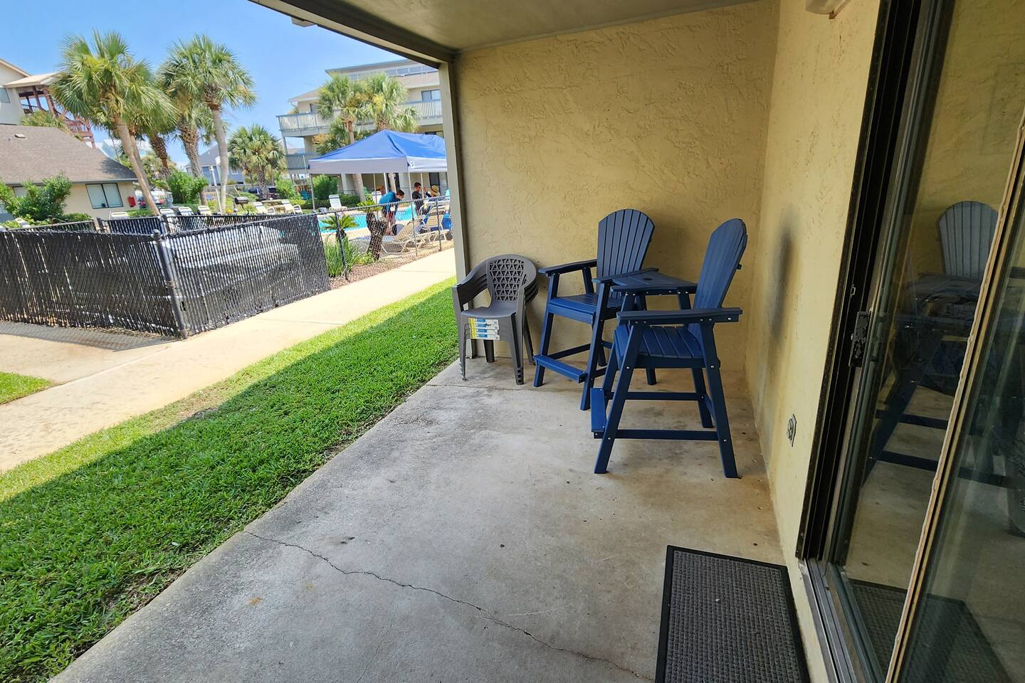 As of July 1st, 2023, this condo has all new bedroom furniture and new chairs in the living room. The entire unit has been freshly painted and new outdoor seating provided. Sunswept Condos feature a Living room with high speed wifi, cable, and an HD TV. The kitchen is fully stocked to prepare meals and serve meals. Includes all major appliances. There is one bathroom. The Bedroom has a King sized bed, dresser, washer/dryer, and a TV with cable. The pool access is outside the back door.
