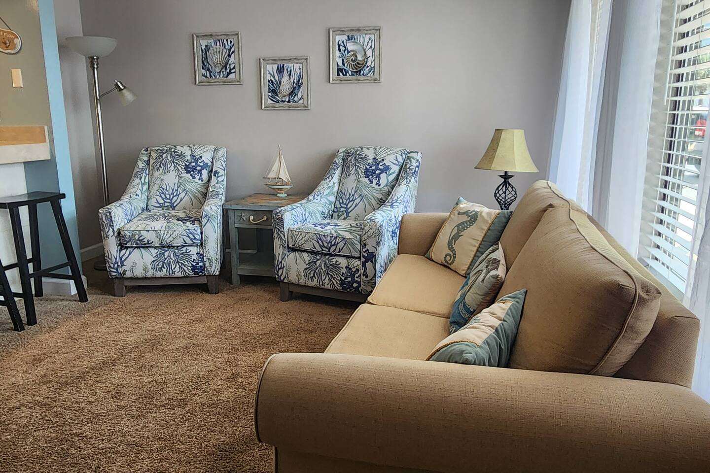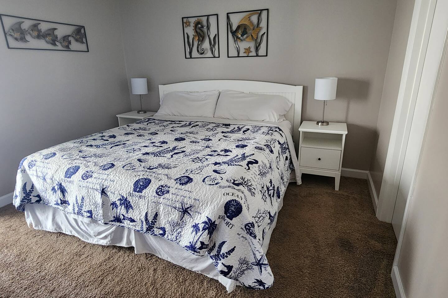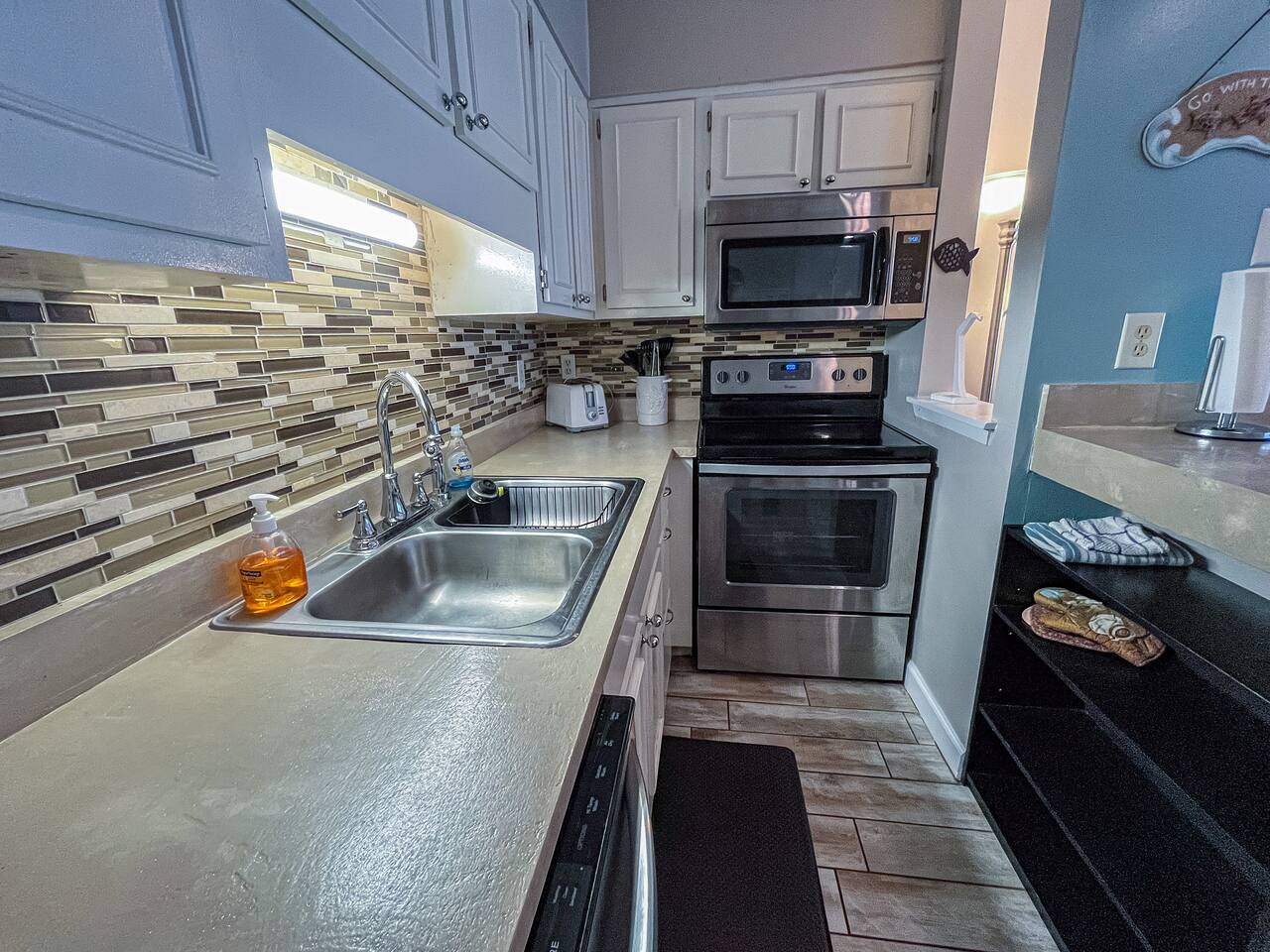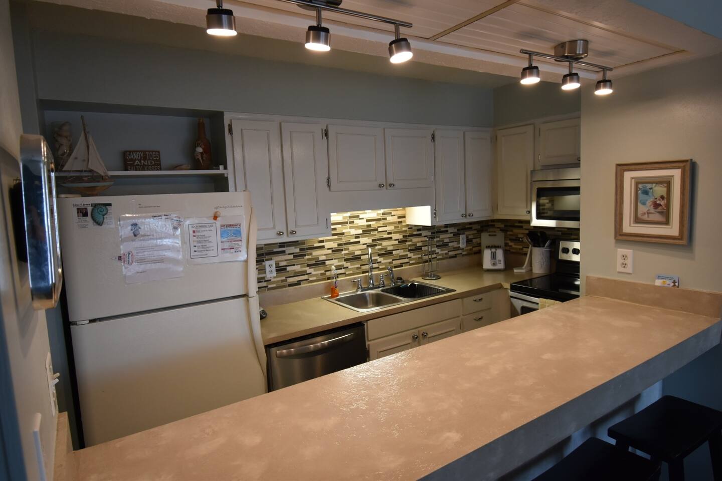 As of July 1st, 2023, this condo has all new bedroom furniture and new chairs in the living room. The entire unit has been freshly painted and new outdoor seating provided. Sunswept Condos feature a Living room with high speed wifi, cable, and an HD TV. The kitchen is fully stocked to prepare meals and serve meals. Includes all major appliances. There is one bathroom. The Bedroom has a King sized bed, dresser, washer/dryer, and a TV with cable. The pool access is outside the back door.