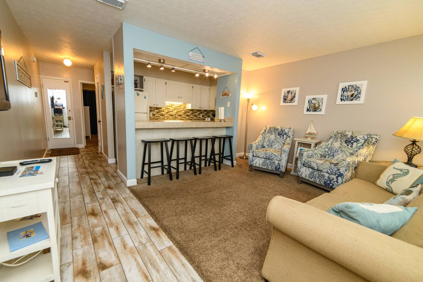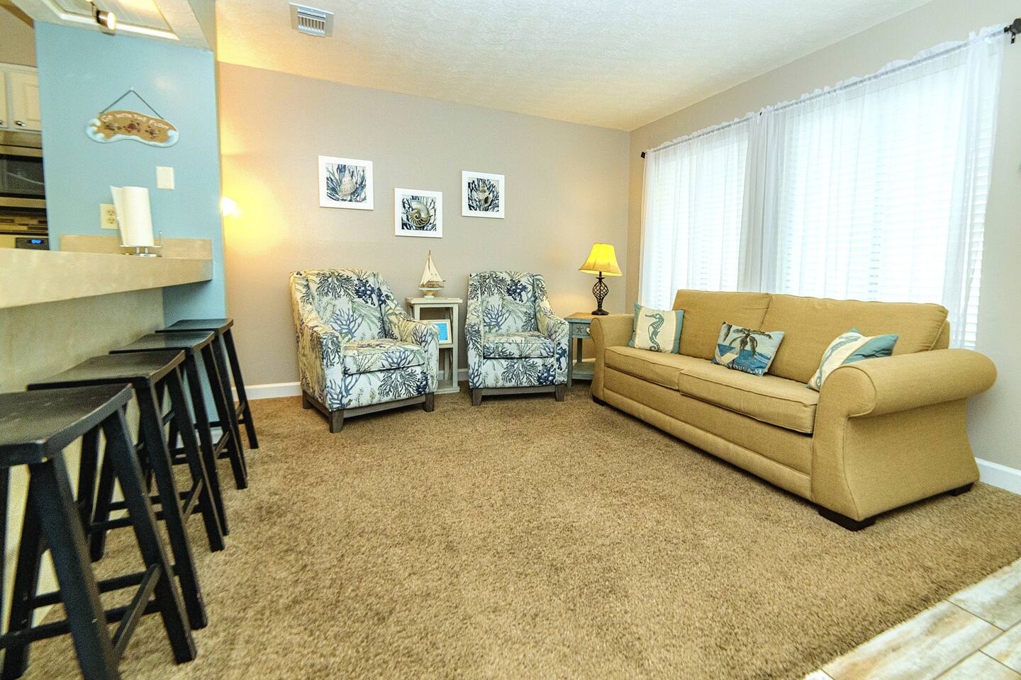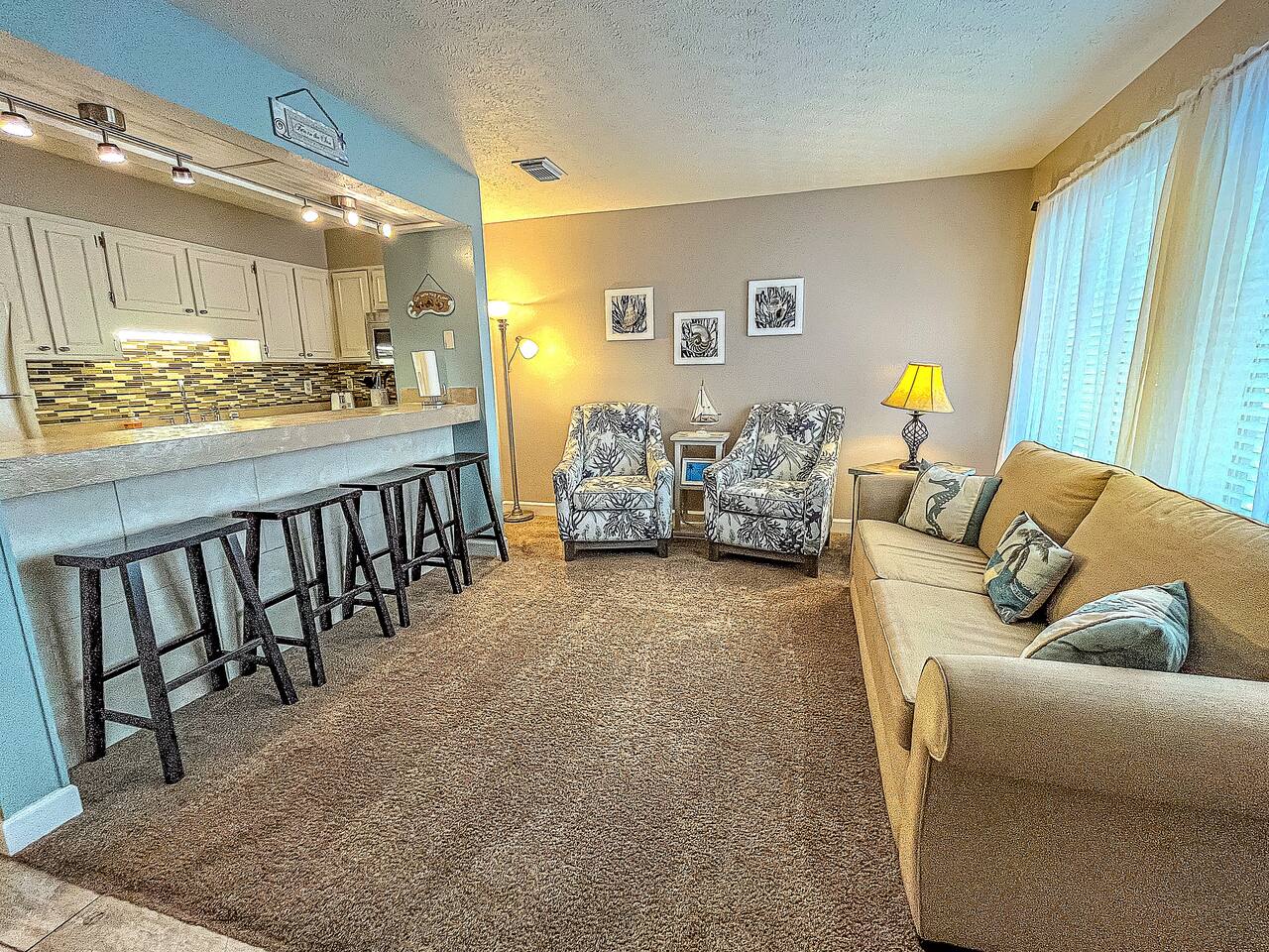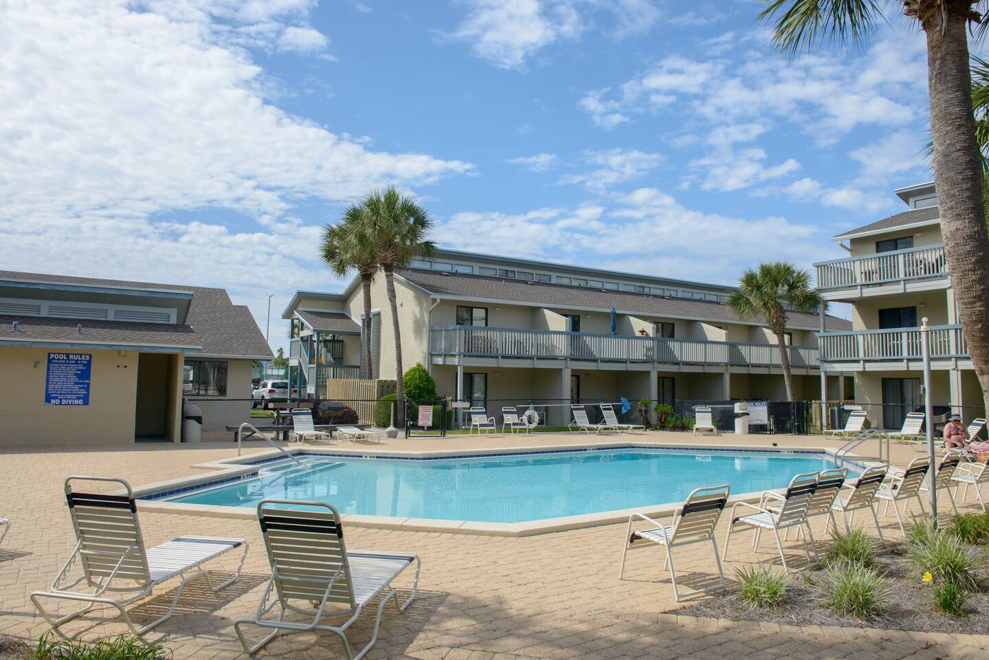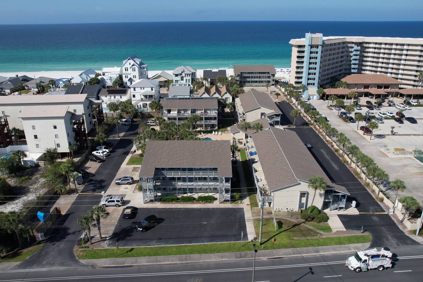 The east end of the beach is much quieter than the west end of town. We love that it is less congested yet has everything you will need nearby. The complex is very laid back and family friendly. It is usually pretty quiet. There are lots of great restaurants nearby. There is plenty of nearby entertainment for all ages. The Marinas and St. Andrews Park are only a couple miles away. Pier Park is 8 miles away.