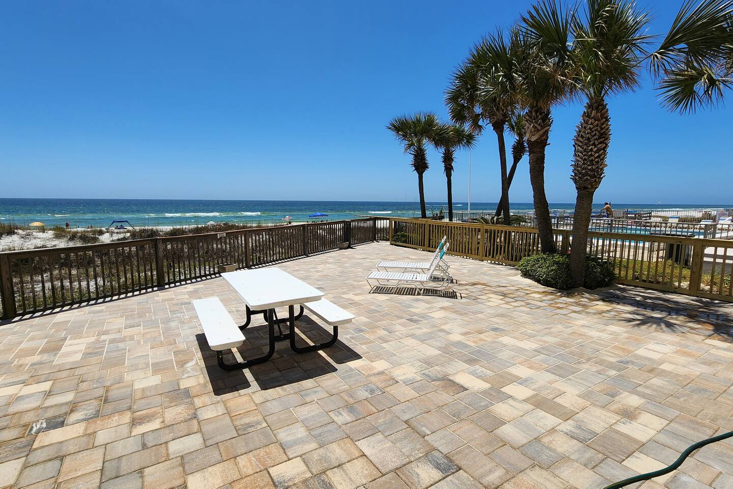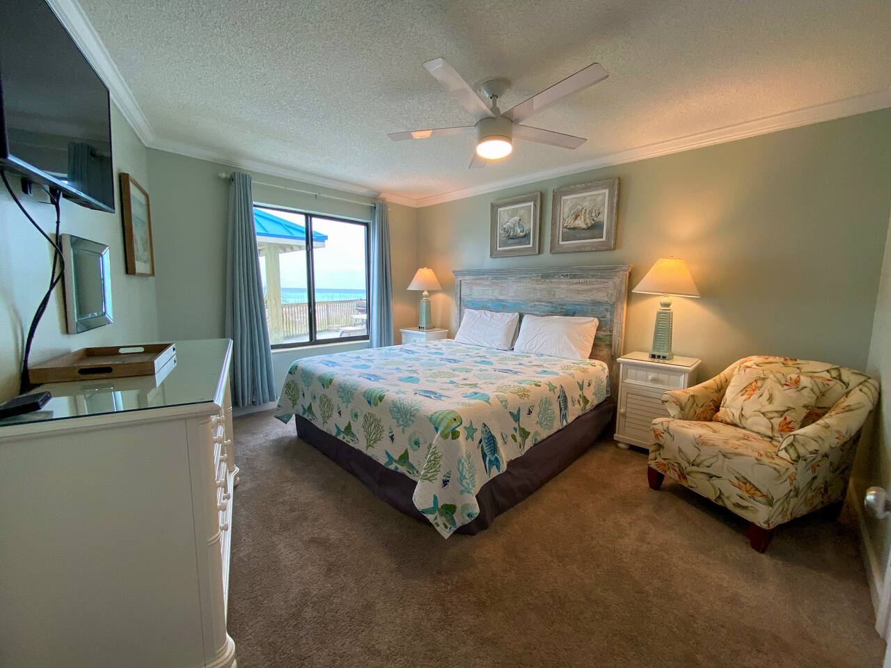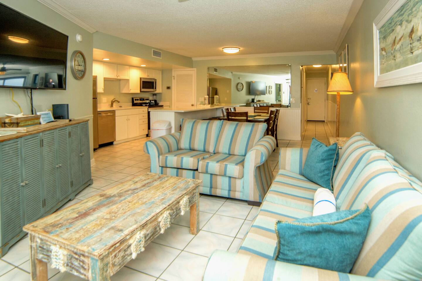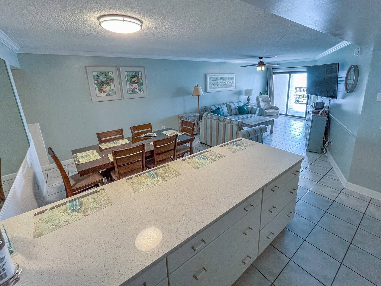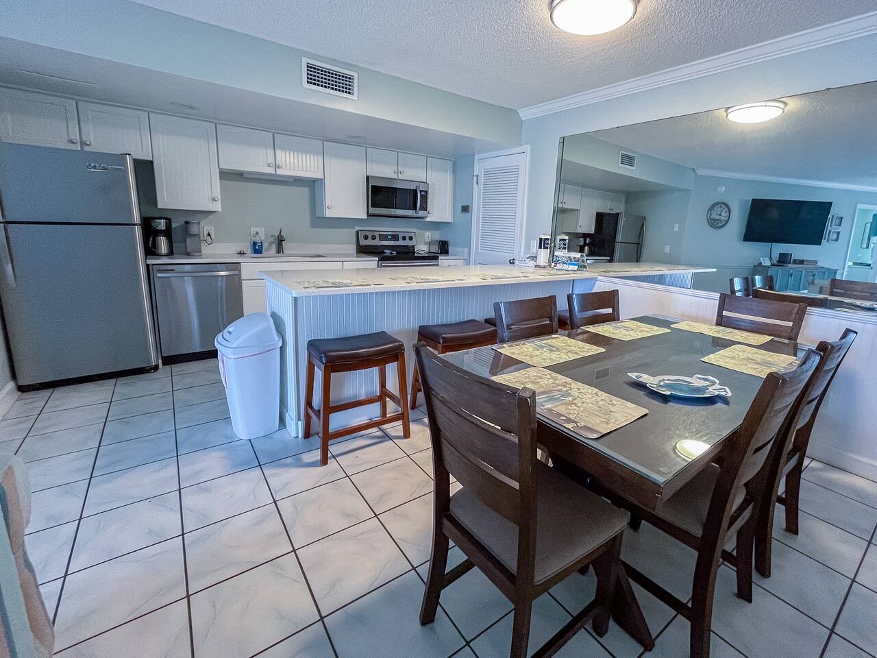 The condo was recently updated with new cabinets, quartz countertops, stainless steel appliances, remodeled bathroom. Living room furniture replaced in 2022. There is an HD TV in the living room and both bedrooms. Being on the ground floor makes access from the parking lot very convenient. The patio, pool, and beach access are all just out the back door. Fantastic views from the Living room and Master Bedroom. We love this location and think you will, too. We also have the unit next door (108). You can book both to accommodate groups up to 16. Click my profile to link to that listing.