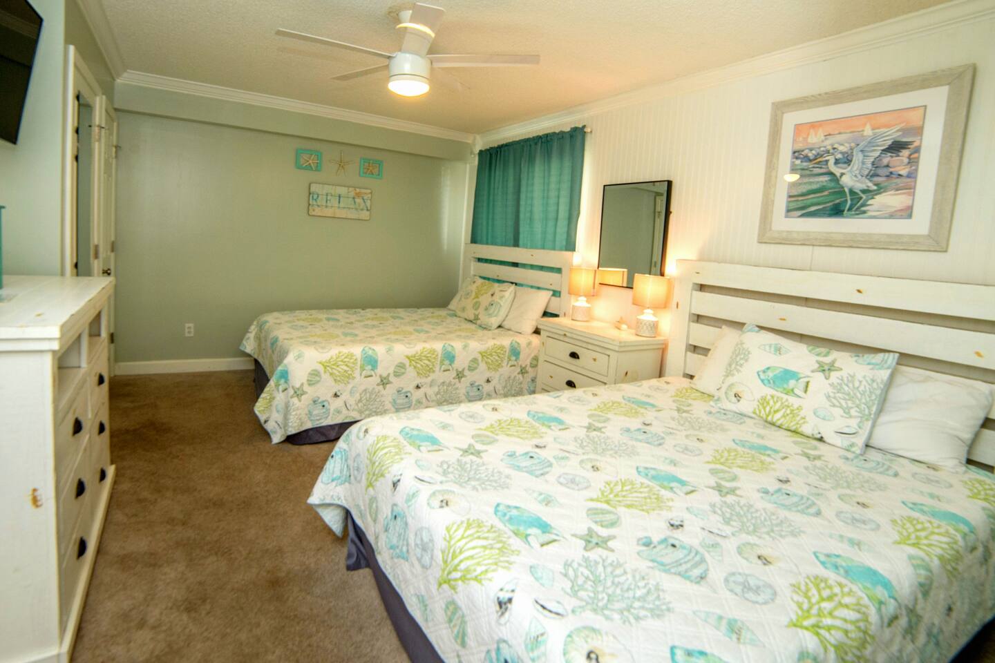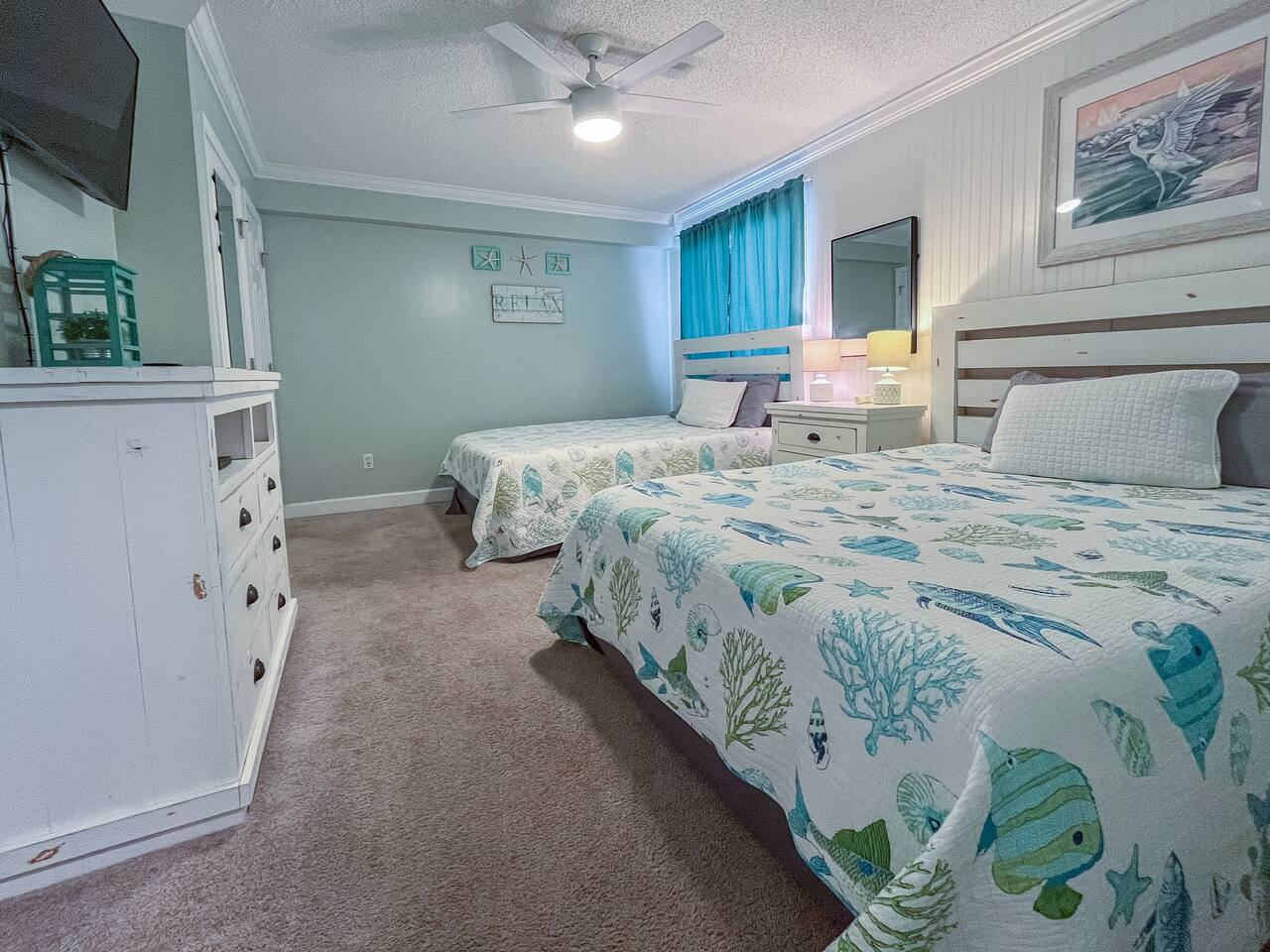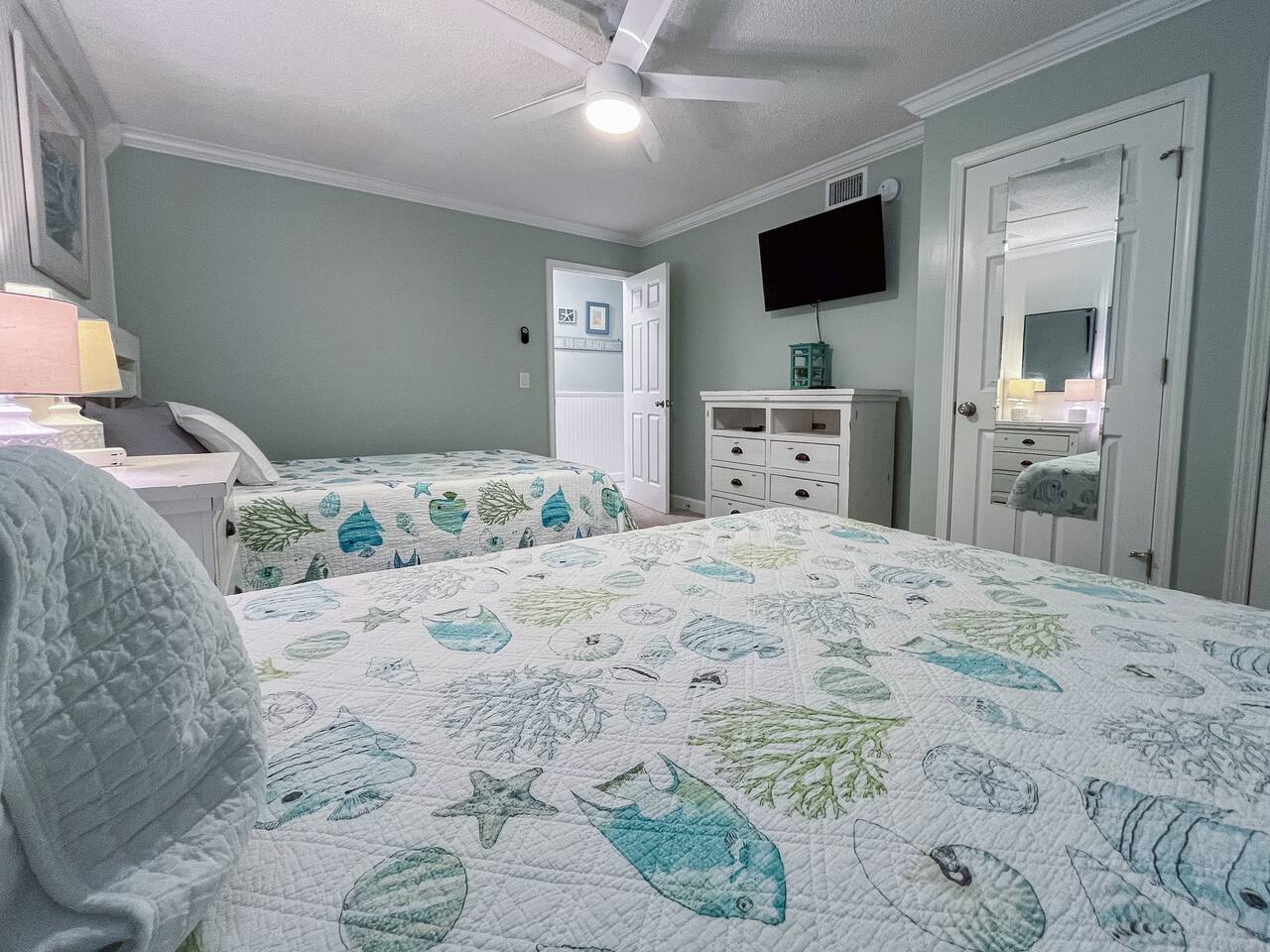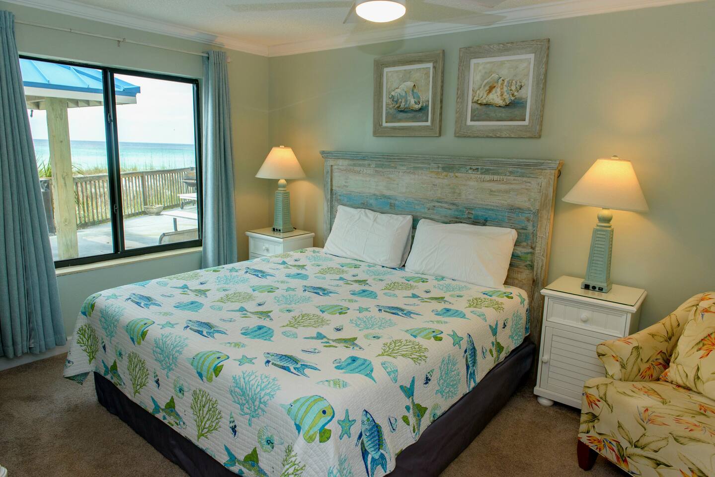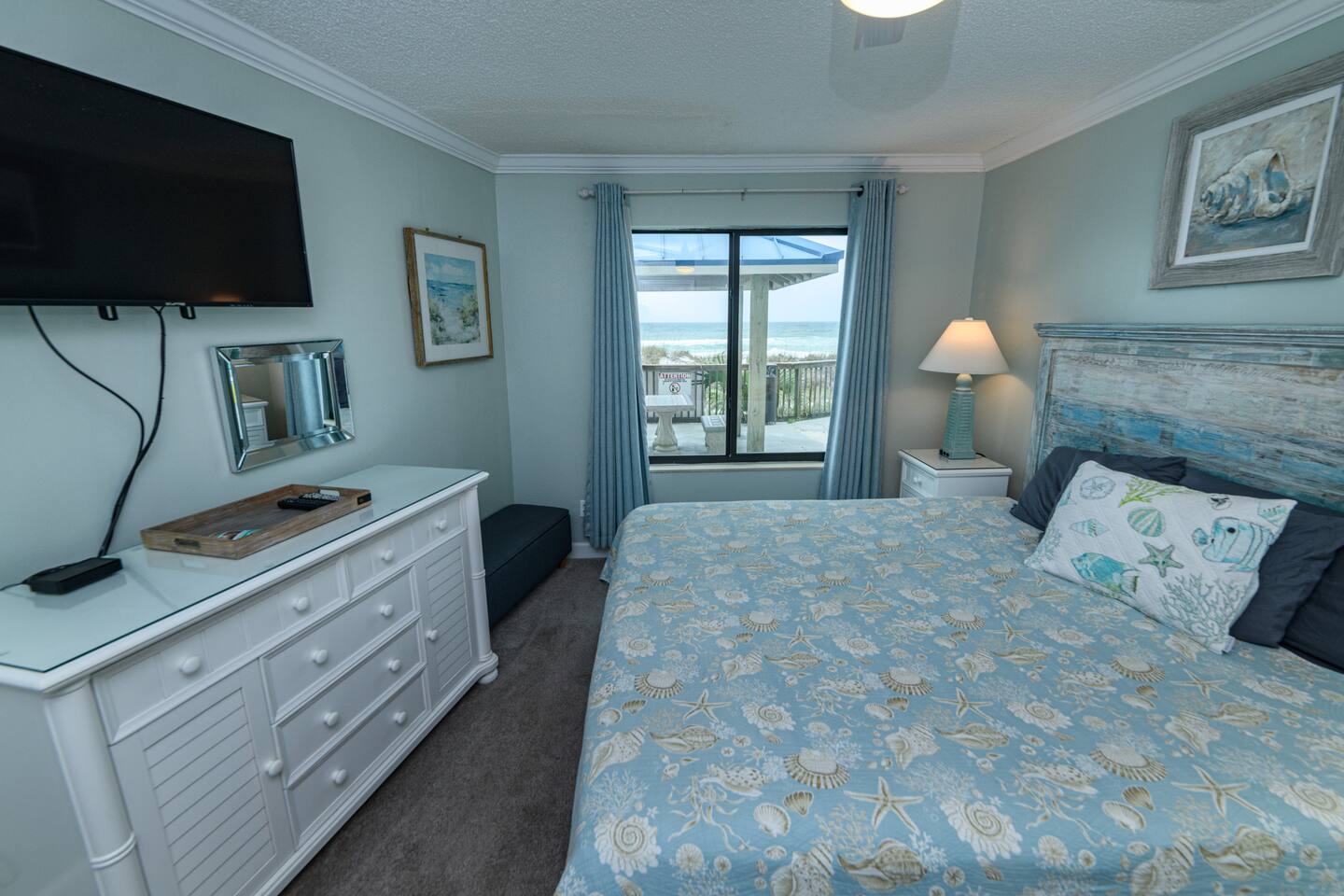 The condo was recently updated with new cabinets, quartz countertops, stainless steel appliances, remodeled bathroom. Living room furniture replaced in 2022. There is an HD TV in the living room and both bedrooms. Being on the ground floor makes access from the parking lot very convenient. The patio, pool, and beach access are all just out the back door. Fantastic views from the Living room and Master Bedroom. We love this location and think you will, too. We also have the unit next door (108). You can book both to accommodate groups up to 16. Click my profile to link to that listing.