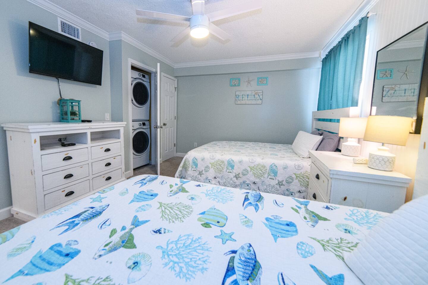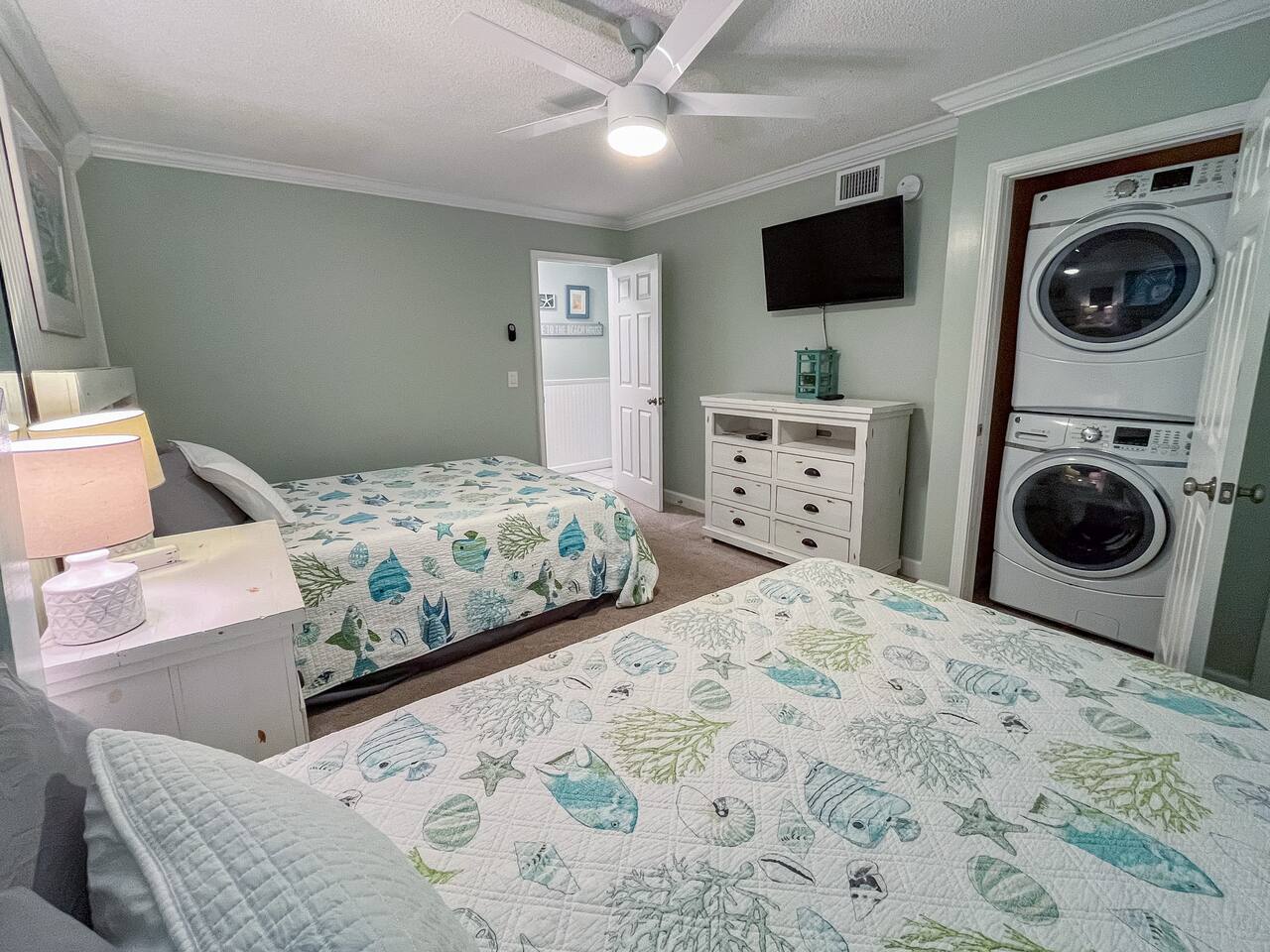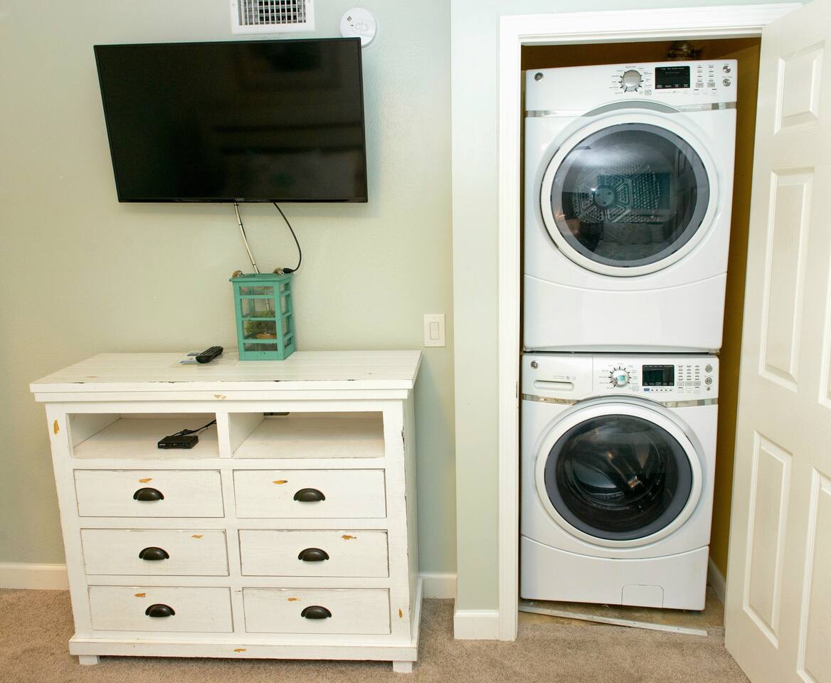 The kitchen is fully stocked with everything you should need. If you find something missing, let us know and we will try to accommodate reasonable requests. There is a full sized washer and dryer in the 2nd bedroom.