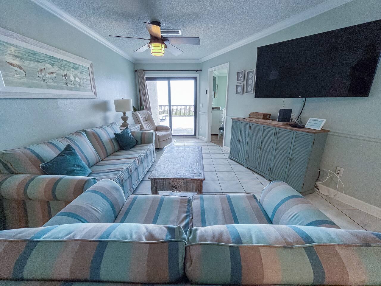This condo is in a great location and is great condition. It is a ground floor unit with parking right outside the door... it is so easy to load and unload the car. Oh, and it has a beautiful gulf view. Pool is right out the back door. King Bed in the Master with en suite bathroom. 2nd bedroom has a Queen bed and full size bed. Sofa sleeper in the living room. Sleeps 8. Kitchen has everything you should need. Two full bathrooms. Linens and starter supplies provided. 3 HD Tvs with cable.